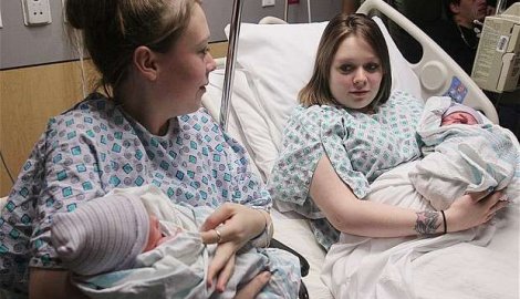 Деветнаестогодишње близнакиње Ејми и Ашли Нелсон нису одгајане да раде исте ствари и нису планирале да им се деца роде у исто време, и заправо су термини за рођење деце били са око недељу дана размака, пише локални лист Акрон Бикон Џурнал.