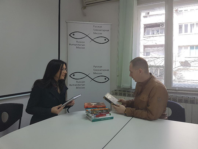 ПРИЈАТНО београдско пре подне у седишту РХМ за Балкан почиње уз кафу и распакивање књига руске литературе намењене српским школарцима у унутрашњости. Директор РХМ за свет Алексеј Полковников говори о свакој књизи по нешто, добро расположен. Задовољан је, каже, резултатима које је РХМ постигла у Србији и нароћито одјеком последње акције у којој је ова НВО доставила готово тону лекова за превазилажење хуманитарне кризе на Косову и Метохији.