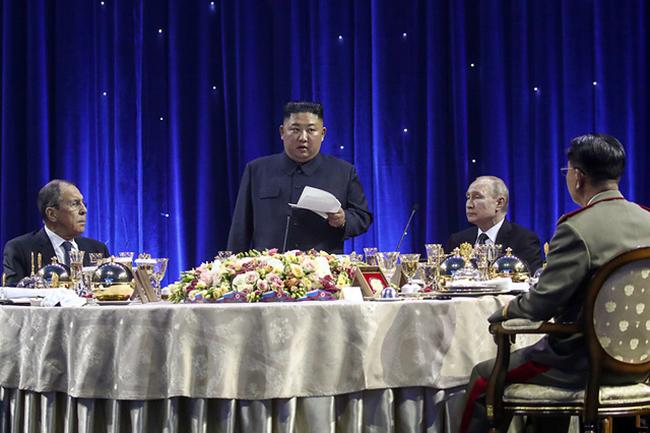 Претходно је Ким, држећи здравицу рекао да подиже чашу за даље јачање и процват велике Русије, за „добро здравље председника Путина“ и за „срећу и предивну будућност обеју земаља“.