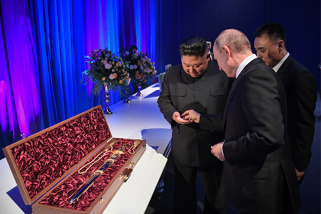 * Севернокорејски лидер, држећи здравицу, рекао да подиже чашу за даље јачање и процват велике Русије, за „добро здравље председника Путина“ и за „срећу и предивну будућност обеју земаља“