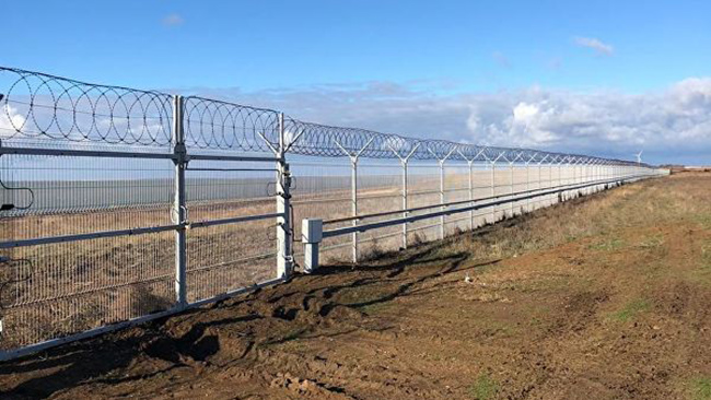 Ограда прати руско-украјинску границу која пресеца Перекопски земљоуз и од јуче потпуно у функцији. Цео сложени систем сигнализације је претходно испробан и уштимован.