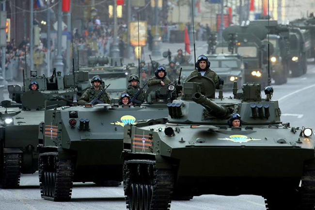 Шојгу је - стојећи у парадном „Зилу“ - обишао постројене јединице које су промарширале Црвеним тргом, а онда је почео дефиле више од 130 „комада“ ратне технике.