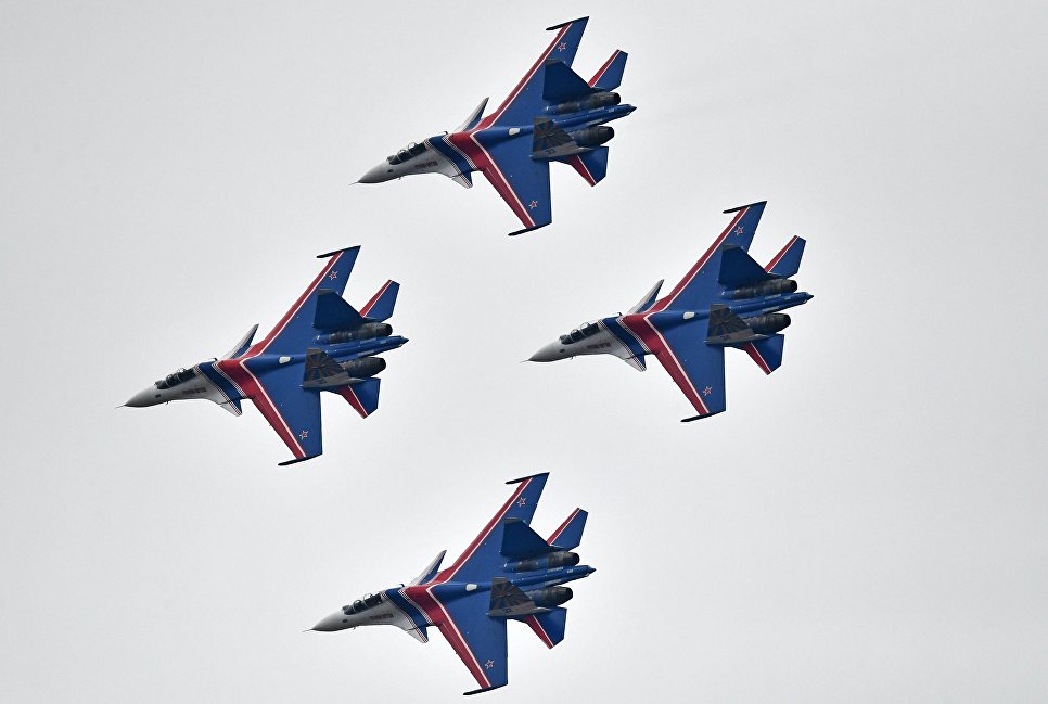 Крај параде ће украсити наступи познатих пилотажних акробатских група „Стрижи“ и „Руски витезови“. Први ће бити у својим добро знаним МиГ-29, а други ће први пут пилотирати авионима Су-30СМ.