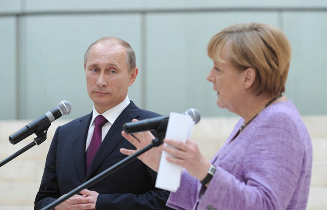 РУСКИ лидер Владимир Путин поново је телефонски разговарао са Ангелом Меркел. Овога пута о току преговора у троуглу Москва-Кијев-Брисел о украјинском дугу за руски природни гас.
