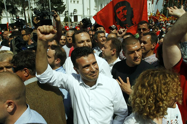 Пре свих - Зоран Заев, лидер Социјалдемократског савеза Македоније, млади и ватрени политичар, који граби власт преко улице. Жесток говорник, за многе је постао нешто попут поп-звезде - прави „селфи“ са ватреном трибином на којој су постројене на десетине његових поклоника.
