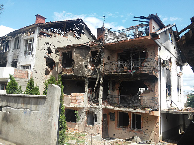 На згради преко пута почетка улице у којој је највише руинираних кућа је постављена албанска застава. На моје питање „зашто албанска а не македонска”, одговор је био „па ми смо Албанци, ово је наша застава”. Одговор који тако личи на пароле од пре 35 година (!) са демонстрација у Приштини марта 1981, у време Социјалистичке Федеративне Републике Југославије: ”„Албанци смо, а не Југословени”!