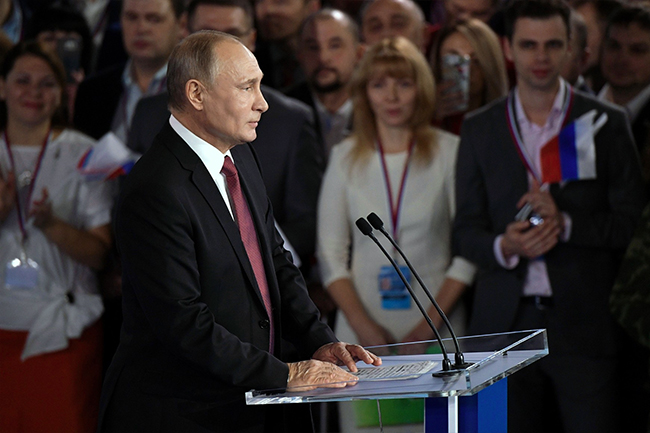 У наставку је означио три главна изазова: „На нама је да наредних година сачувамо и учинимо многобројнијим свој народ. Пред нама је стварање нове економије, са развојем Арктика, Далеког Истока и Сибира. Чека нас и права револуција у медицинским и другим технологијама. Ми у томе не смемо никога опонашати“.