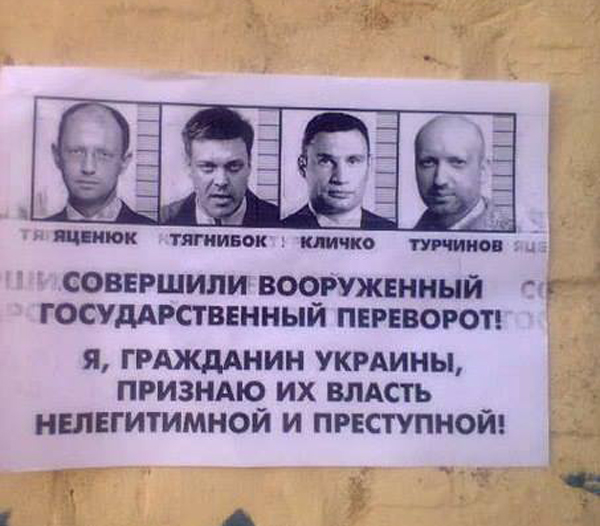 Ноћу, на сопствени ризик, борци антифашистичког отпора лепе летке. Покушавамо да организујемо и митинге, али њихови учесници су малобројни: људи се боје да ће доспети у затвор за кршење јавног реда због антифашистичких парола (!) или постати жртва обрачуна палицама 17-18-годишњих јуноша из Десног сектора и фудбалских ултраса.