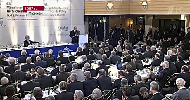 Говор Владимира ПУТИНА на Минхенској конференцији о безбедности 2007. године: „Русија је земља са историјом дужом од хиљаду година. Она је готово увек користила привилегију да води независну спољну политику. Ни данас немамо намеру да изневеримо те традиције”.