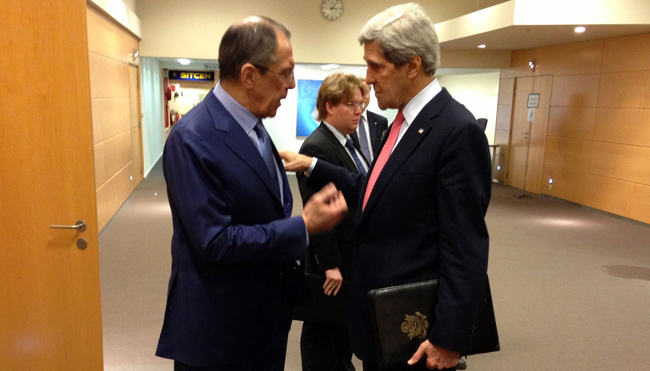 Руски министар је апеловао на Керија да утиче на Кијев и не дозволи тамошњим усијаним главама да испровоцирају крвави конфликт, односно – да подстакне садашње украјинско руководство да испоштује све обавезе преузете у Женеви и тако помогне почетку деескалације ситуације.