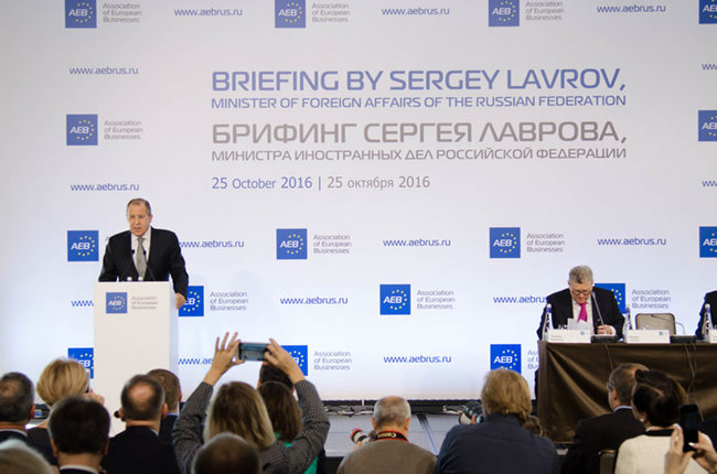 У разговору у Москви са члановима Асоцијације европског бизниса, шеф руске дипломатије је указао: