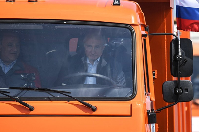 Путин за воланом „Камаза“ први прешао Путинов мост који се званично зове Кримским