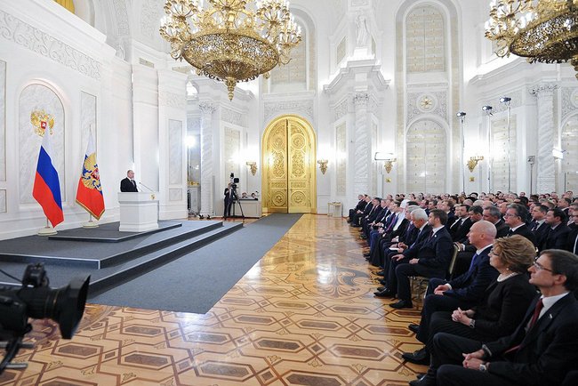ПРЕДСЕДНИК Руске Федерације Владимир Путин данас се – у Георгијевској сали Великог кремаљског дворца – обратио члановима горњег (Савета Федерације) и доњег дома (Државне Думе) националног парламента.
