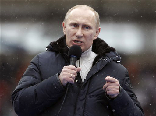 Путинове присталице су, иначе, на митинг дошле са транспарентима: „Ми смо за Путина, Путин је за нас“, „Изабери прави пут“, „Верујем у Русију, верујем у Путина“, „Ми бирамо стабвилност! Ми бирамо Путина“, „Ми исписујемо историју“, „Путин је наш председник“...