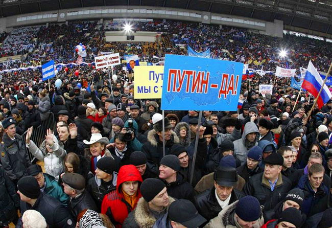 • Најутицајнији руски тв-коментатор Михаил Леонтјев окупљенима рекао да је Русија у прилици да изабере своју будућност а да је Путин - прави избор. При том је упозорио: „Нашој земљи није потребна никаква нова револуција“