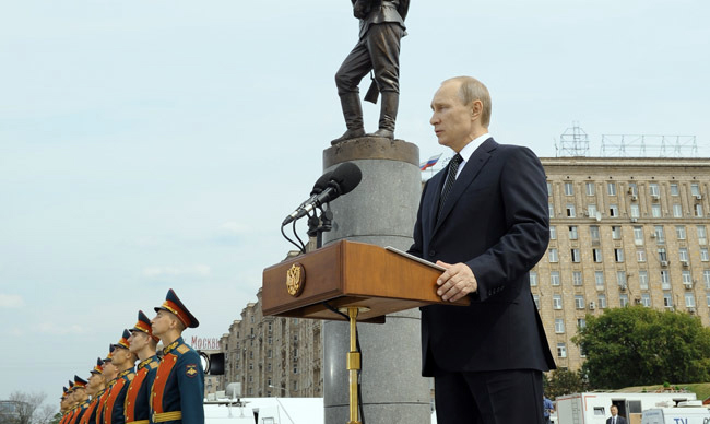 Након говора, Путин је положио букет црвених ружа на споменик.