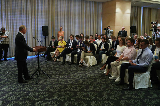Путин је у Сјамену одбацио тврдње о било каквом покушају цензуре или притиска власти на редитеља Кирила Серебрењикова, оптуженог за проневеру државног новца. „Нема цензуре, нема притисака. Он је од Владе РФ за последње 2-3 године добио око 300 милиона рубаља, а од владе Москве још 700 милиона. То је милијарда. А то је и доказ да се власт према његовом стваралаштву односи бар неутрално. Јер, да је имала замерке - новац не би давала. Нека питања за њега има само државни тужилац и само поводом трошења државног новца“.
