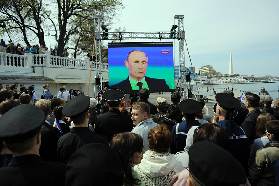 В. ПУТИН: Није се то завршило сада, нити поводом Крима. То је пукло одмах полсе догађаја у Либији. Јер, тада је председник Русије Медведев - Дмитриј Анатољевич Медведев је тада био председник Руске Федерације - подржао западне партнере и резолуцију поводом Либије. А о чему је она говорила? Та резолуција је говорила само о забрани летова за борбене авионе тадашње владе Либије. А до чега је то реално довело?