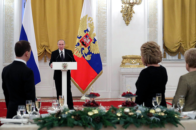 Руски лидер је ово уверење изнео пред учесницима традиционалног предновогодишњег пријема у Кремљу који садржински суштински изменио због трагедије Ту-154 Министарства одбране.