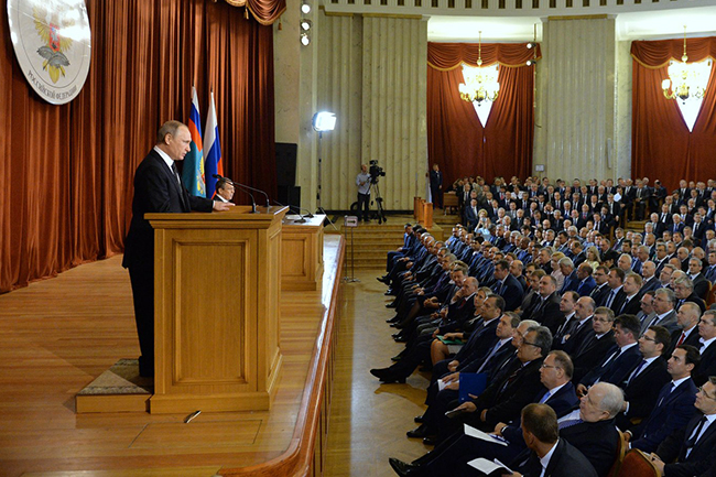 „Нас стално оптужују да имамо неке војне активности. Али, где? На својој територији. А ово што NATO развија уз наше границе, зар је то нормално? Алијанса у Пољској и балтичким државама размешта снаге за брза реаговања и арсенале са офанзивним наоружањем. Све је то срачунато на подривање војног паритета који је постојао деценијама“