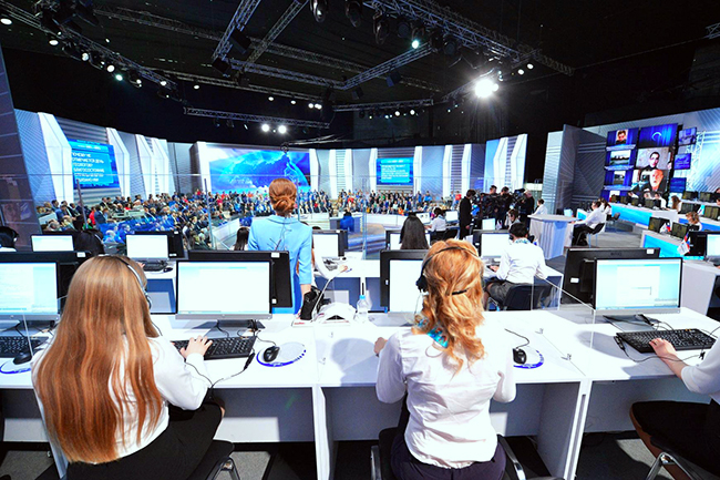 Путин: Ми се не налазимо и нећемо се налазити у непријатељском окружењу. То је потпуно искључено. Ми имамо веома добре односе са огромном већином земаља у свету. Да не говорим о таквим организацијама које ефикасно раде, као што су ШОС - Шангајска организација за сарадњу која се проширује на рачун великих сила, о нашим интеграцијама у савезе, Евроазисјки економски савез, БРИКС и тако даље.