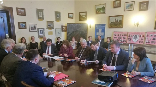 У представништву су се, поред осталих, окупили: амбасадор Србије у РФ Славенко Терзић, посланик у Државној Думи Генадиј Скљар, заменик губернатора Калушке области Владимир Потјомкин, министар области за унутрашњу политику и масовне комуникације Олег Калугин, руководилац Друштва за развој руског историјског просвећивања „Двоглави орао” Леонид Решетников, шеф калушког Друштва руско-српског пријатељства и руководилац Фонда Владимира Храброг Стефан Генич.