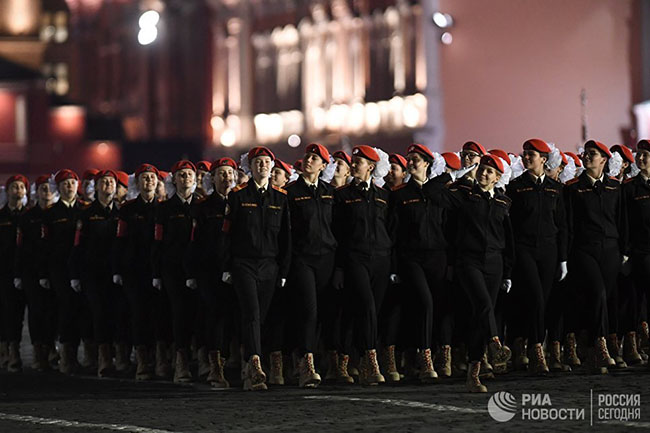 У `пешадијску параду` су први пут укључени питомци Нахимовског училишта из Севастопоља, Московског председничког кадетского училишта Росгарде, питомци Смоленске војене ПВО и парадни састав Војне полиције.
