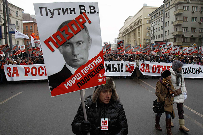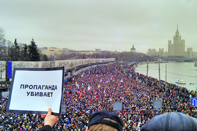 У Русији таквих људи такође има. Они су груписани око тзв. не-системске опозиције и редовно у Москви организују митинге који не прелазе 50 хиљада људи. То представља око 0,3% становништва престонице. У другим градовима, таквих људи је још мање. Генерално, у земљи, изборна подршка ових кругова варира око 1% популације. Међутим, циљани информациони рат против Русије се спроводи од краја 2013. године, тј. више од две године. Очигледно је да западна пропаганда засад није достигла жељени резултат - број људи, спремних да подрже несистемску опозицију не расте.