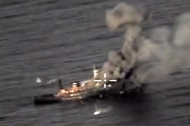 Видео Министарства одбране РФ, наиме, покатује како руски вишенаменски ловци-бомбардери Су-34 најновијим  противбродским ракетама Х-35У уништавају „поморске циљеве“.