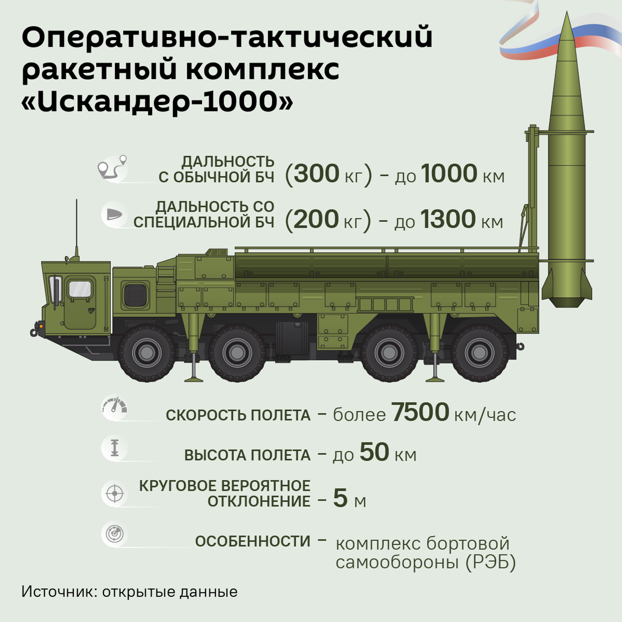 * Неухватљиве хиперсоничне ракете Искандер-1000 способне су да из Калињинградске области за неколико минута погоде важне циљеве у Великој Британији, Француској, Белгији, Холандији, Данској и Немачкој. Већина војних база САД и НАТО-а у источном Медитерану налази се у домету тих ракета са Крима