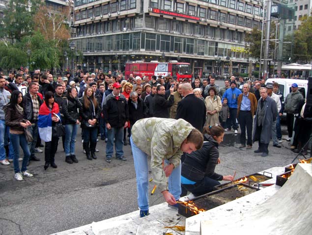 НА београдском Тргу Републике, 23. октобра од 16 сати, одржан је скуп „1001 свећа за 1001 убијеног Србина на Косову и Метохији од доласка НАТО“.