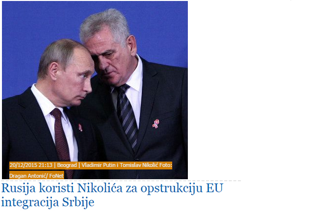 „Извесно је да председник Николић за такве наступе и пропагирање евроскептицизма добија помоћ Русије, односно управља се интересима те државе, а не сопствене. Такође, Томислав Николић није учествовао у процесу европских интеграција ни један секунд, нити има икакве заслуге за отварање поглавља. Схвативши да му све измиче, он се већ дуже време у потпуности окреће од прокламоване политике Владе Србије, а то су европске интеграције и директно заступа интересе Русије, како у Србији, тако и у региону”, истичу саговорници „Данаса” и напомињу да тако разумеју и Николићеве позиве Српској православној цркви да се изјасни о поглављу 35, о Косову, односно, да се „меша у државничке послове”, као и све друге изјаве који иду директно против Европске уније.