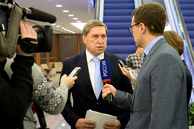 Ушаков је рекао да ће се Путин у Санкт Петербургу срести, између осталог, са аустријским канцеларом Кристијаном Керном, премијером Курдског аутономног рејона Ирака Начирваном Барзанијем и другим лидерима и представницима организација.