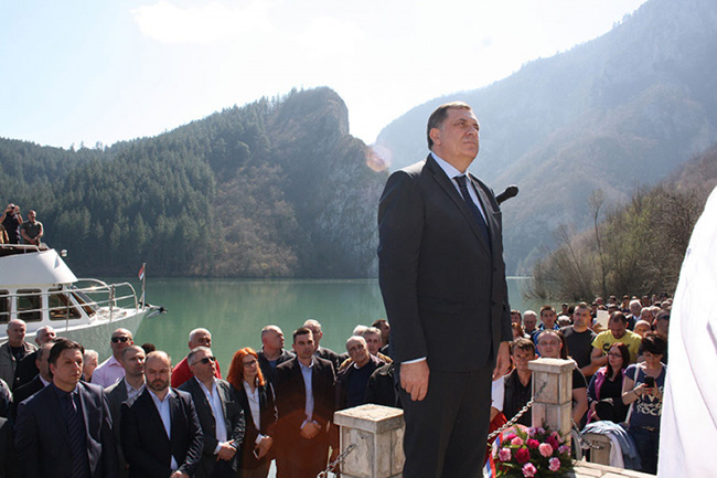 „На овој Дрини, која вековима тече, нема места да није обележено неко страдање Срба. И онда када су уз лелек са ћуприје на Дрини одлазила најбоља српска деца, отимана од српских породица да би била васпитана у другој култури и онда када овде италијанске окупационе јединице нису дале да српски народ пређе преко моста на Дрини, него је морао да бежи овде низводно, надајући се Србији, тој вечној нади српског народа, тој земљи коју сви волимо”, рекао је Додик.