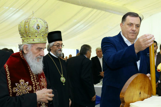 ПАТРИЈАРХ српски Иринеј уз саслужење владике бањалучког Јефрема и ове је године обавио свети чин молитве и ломљења славског колача на крсној слави Ђурђевдан Милорада Додика, председника РС.