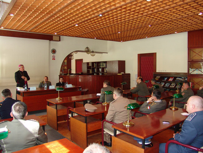 Официрима 55. класе Генералштабног усавршавања, који се школују за најодговорније дужности у систему одбране, монсињор Хочевар говорио је о доприносу који цркве и верске заједнице могу дати у процесу очувања и снажења безбедности у региону југоисточне Европе.