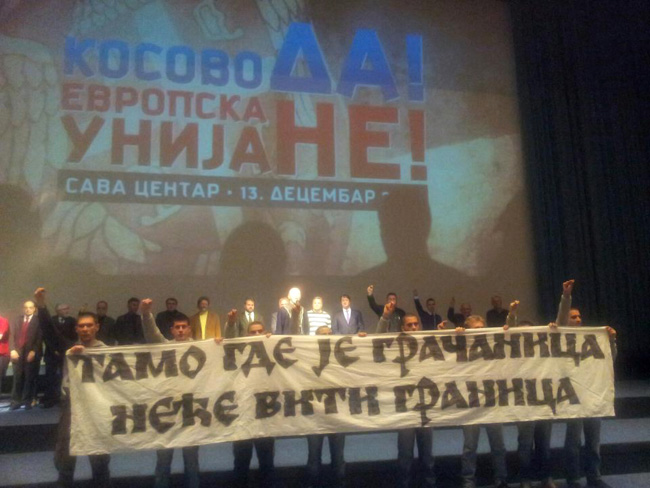 УЧЕСНИЦИ СКУПА „КОСОВО ДА! ЕВРОПСКА УНИЈА НЕ!” НА ПРЕКИД ЕВРОПСКИХ ИНТЕГРАЦИЈА И ОТПОР „ИЗДАЈНИЧКОЈ ВЛАСТИ” У БЕОГРАДУ