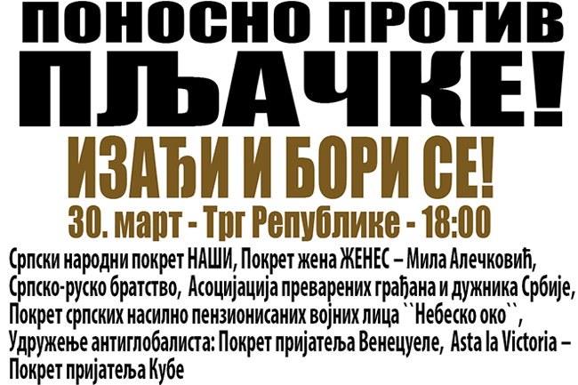 СРПСКИ народни покрет НАШИ данас у 18 часова, на београдском Тргу Републике, организује Марш против пљачке, беде и сиромаштва.