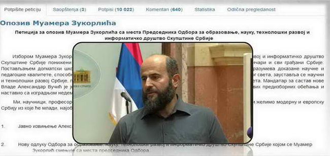 Петиција за опозив Муамера Зукорлића са места Председника Одбора за образовање, науку, технолошки развој и информатичко друштво Скупштине Србије