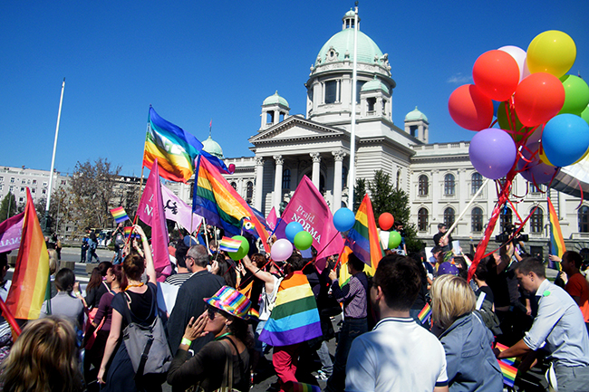 LGBT активисти испред Дома Народне скупштине