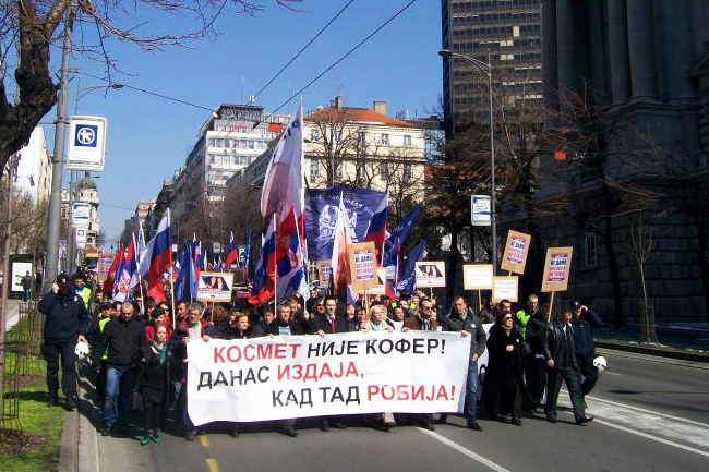 Дачићу су испред зграде Владе Републике Србије радикали донели паролу „Космет није кофер - данас издаја, кад-тад робија!“