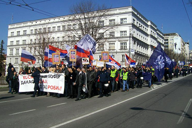 СРПСКА радикална странка је данас обележила девету  годишњицу погрома над Србима са Косова и Метохије протестном. Шетњом од зграде Председништва Србије до зграде Владе и натраг.