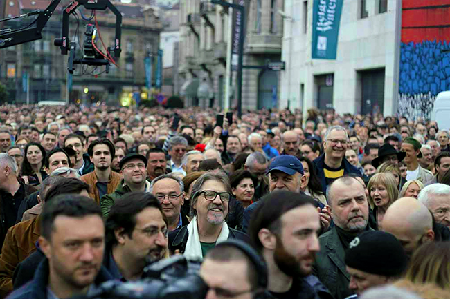 Он је рекао да се „Србија неће смирити“ док не добије одговоре на питања „ко је у главном граду укинуо државу, ко мисли да је изнад Устава и закона, чији су интереси пречи од безбедности и имовине грађана, ко је забранио полицији да штити грађане, ко је маскираним криминалцима и хулиганима дао полицијска овлашћења, ко је саботирао тужилаштво, ко је почистио место злочина и чији је новац важнији од људи и државе?“