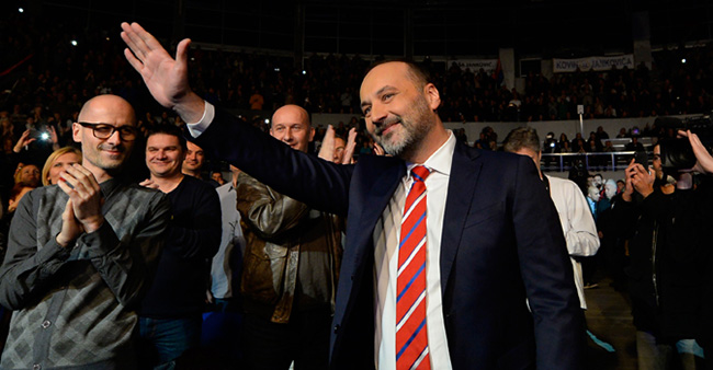- Пред пуном халом спортова на Новом Београду рекао и да ће они који су смањивали пензије, куповали лажне дипломе, рушили Савамалу, уходили новинаре, они који су одговорни за аферу хеликоптер и поплаве морати да одговарају за ту неправду