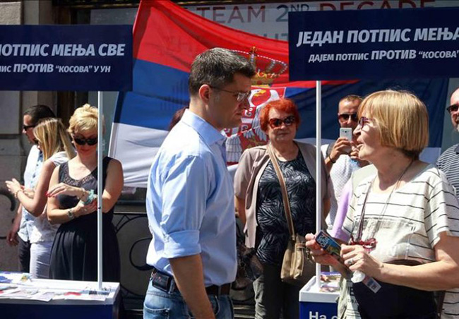 Он је новинарима казао да је иницијатива прикупљања потписа надстраначка и да могу да је потпишу сви који сматрају да Србија не треба да да Косову чланство у УН.