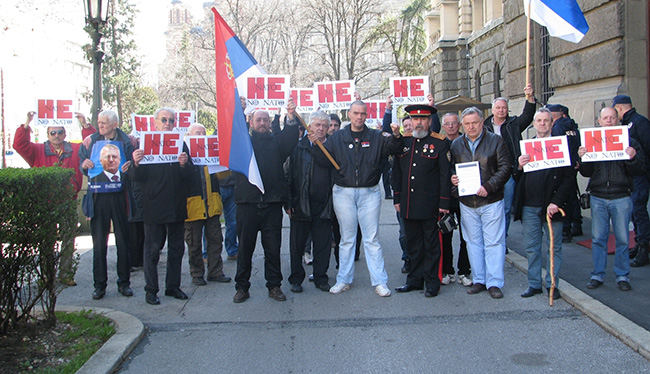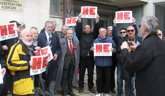 • Народни савез за спас Србије – који засад чине Покрет за Србију и Источна алтернатива  - истакао и захтев за затварање НАТО Канцеларије за везу, која се налази у згради Министарства одбране Србије у Бирчаниновој улици у Београду