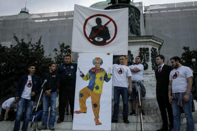 Скуп је завршен тако што су организатори позвали окупљене да се сликају поред слике Александра Вучића у природној величини, обученог у одело кловна, како би му показали да га се не плаше. За то време са разгласа су емитоване Вучићеве патриотске поруке и делови интервјуа из времена док је био члан Српске радикалне странке.