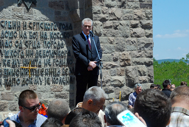 ГОВОР председника Србије Томислава Николића пред Спомеником палим српским јунацима у Косовском боју на Газиместану у суботу прекинут је због увредљивог скандирања групе младих.