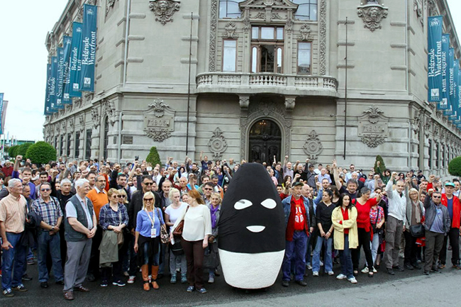 Скуп који је протекао без инцидената, завршен је заједничким фотографисањем окупљених испред зграде Геозавода где је седиште спорног пројекта „Београд на води“. Окупљени су ту поставили велико јаје са фантомком као симбол рушења током постизборне ноћи, између 24. и 25. априла.