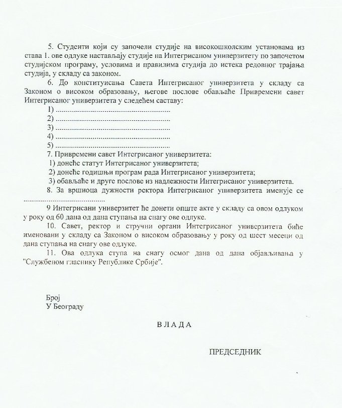 Такође, не само да је постојала иницијатива за промену статуса приштинског Универзитета у Косовској Митровици, већ је Канцеларија у пропратним актима предлагала и решења у виду одлуке како би тај нови „интегрисани Универзитет“ требао да изгледа: